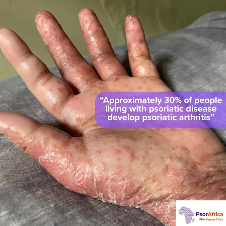 An estimated 30 percent of people with psoriasis also have psoriatic arthritis. Joint symptoms usually begin years after skin symptoms appear, but they can also begin before or without skin symptoms. The severity of psoriatic arthritis is independent of skin symptoms.
